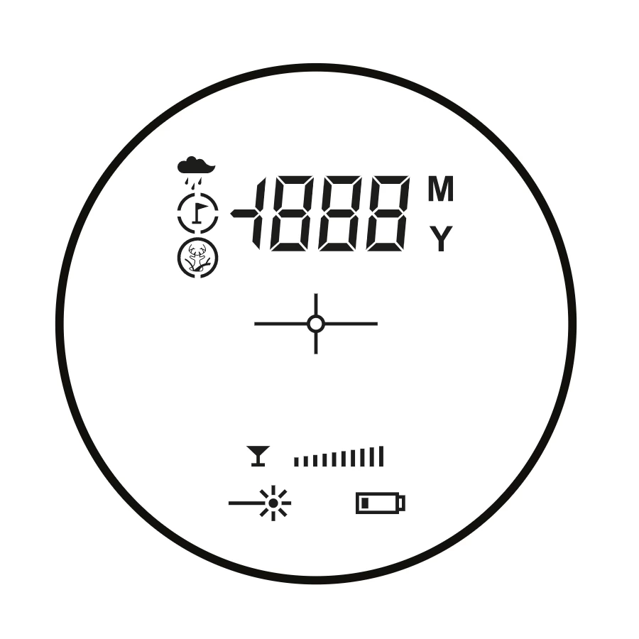 LCD display. Modes: Distance, Rain, Flag, Hunt.