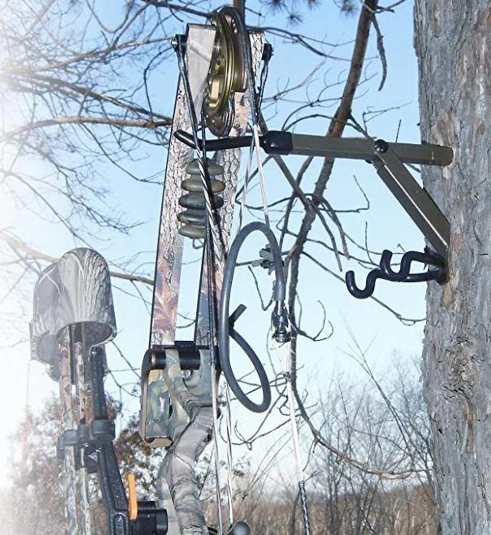 The super-strong machined mounting screw on the hanger can then be easily screwed into the pilot hole. The dual-prong accessory hook provides a great place to hold calls, binoculars, rattling antlers, quiver, etc.