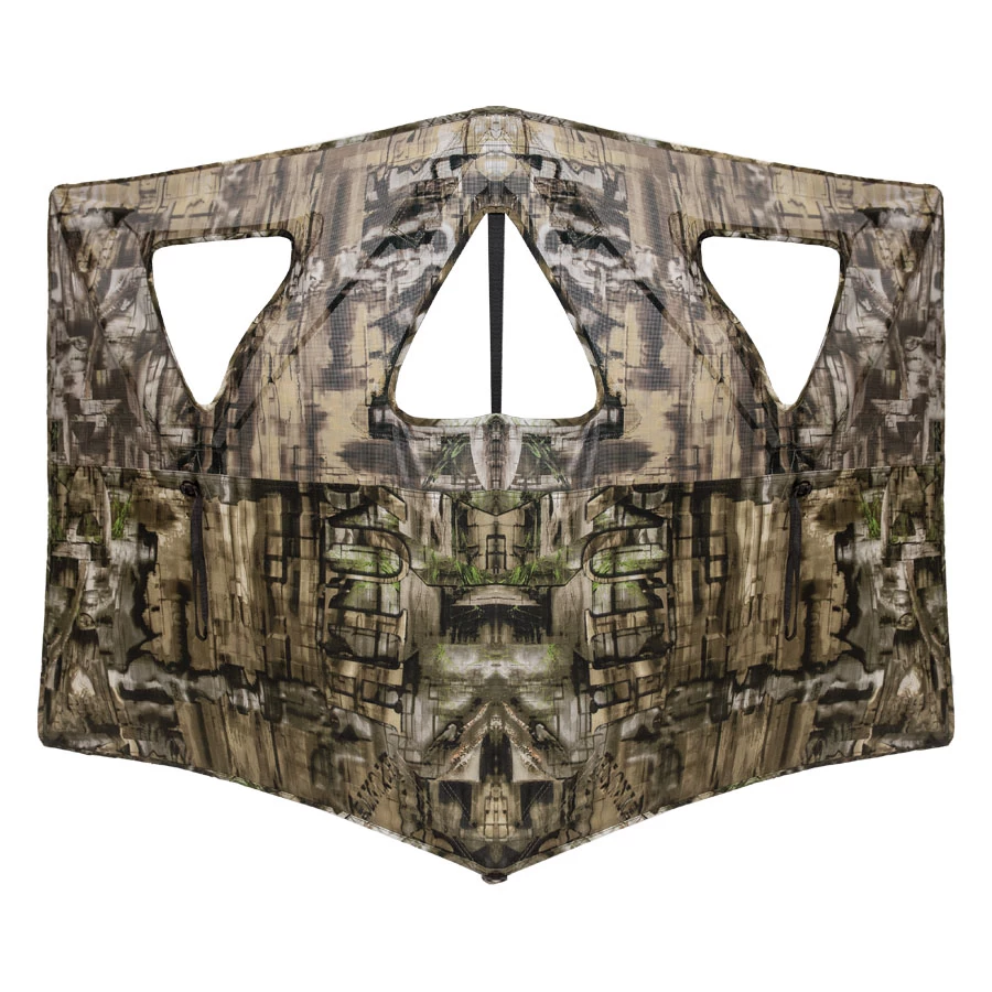 Introducing the Primos Double Bull Stakeout Blind with SurroundView™ technology. The Stakeout is constructed with two exclusive one-way see through walls, so you can see every movement in front of you without moving to peek around or above the blind to steal a glance. Three shooting windows are perfectly positioned for multiple shooting lane options. Its two-hub design keeps both walls sturdy yet easy to pop up and tear down. It’s the Blind Without A Blind Spot built for super light and ultra-portable concealment!